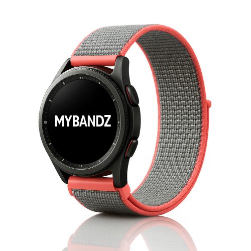 MYBANDZ Tépőzáras rugalmas szövet óraszíj / szürke-korallpiros / 22mm