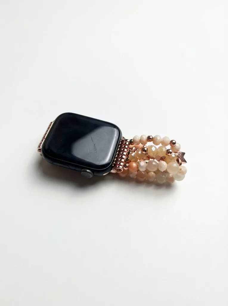 Egy igazi 2 az 1-ben óraszíj. A gyöngyök nem mindennapi kinézetet biztosítanak az óraszíjnak és vele együtt az Apple Watch-odnak is. A rugalmas kialakításnak köszönhetően nagyon könnyen és gyorsan feltehető a csuklóra.