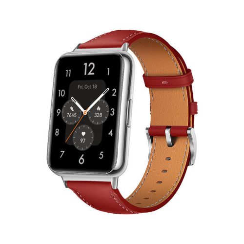Elegáns bőr szíj szépen megmunkált ezüstös fém csattal Huawei Watch Fit 2 (!) okoskarkötőhöz. Irodai munkához és mindennapi viselethez is kiváló.