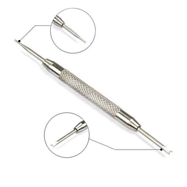 Stiftkiszedő szerszám, ha hagyományos órával rendelkezel, amin nem lehet egyszerűen puszta kézzel eltávolítani a szíjat. Ennek a szerszámnak a segítségével és a mellékelt videó alapján Te is könnyedén el tudod távolítani a szíjat és aztán akár az oldalunkon megtalálható szíjakra tudod cserélni.