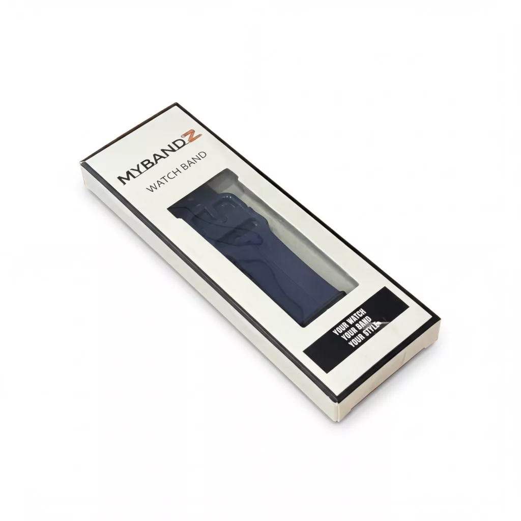 Kiváló minőségű szilikon szíj, középen futó bevágással ami még sportosabbá teszi. Ívelt vége eltünteti a rést az óratest és a szíj között. A csatok egyszínűek a szíjjal és szépen lekerekítettek.