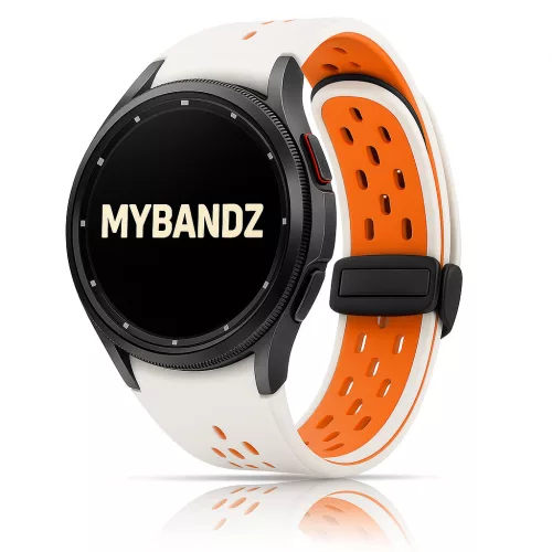 MYBANDZ Lélegző mágneszáras szilikon óraszíj /bézs-narancs Galaxy Watch 4-5-6-7-7