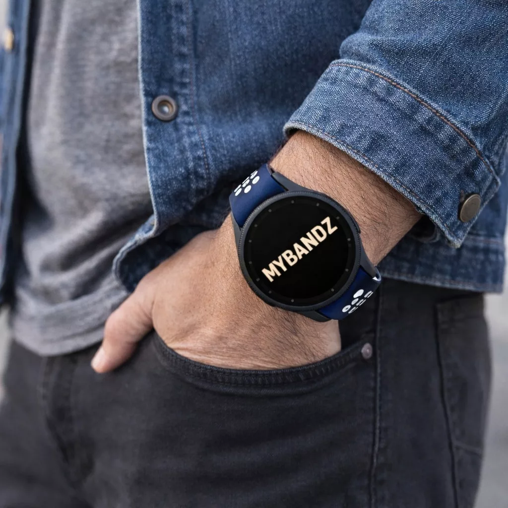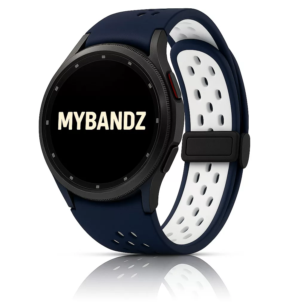 MYBANDZ Lélegző mágneszáras szilikon óraszíj /kék-fehér Galaxy Watch 4-5-6-7-7
