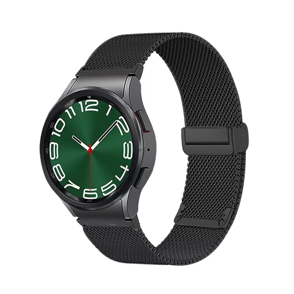 Milánói fém szíj mágneses pillangó zárral, ami még stabilabban tartja a beállított méretet mint a mágneses verzió. Olasz dizájn, könnyed és elegáns viselet is egyben, ha nem csak edzéshez szeretnéd használni a Galaxy Watch 4, 5, 6 és 7 órádat.