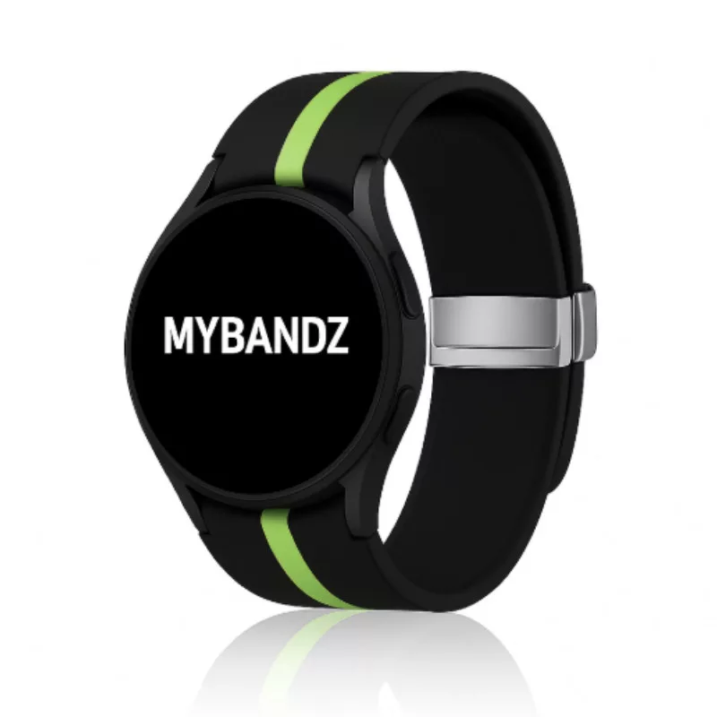 MYBANDZ Csíkos szilikon óraszíj Galaxy Watch 4-5-6-7 /fekete-zöld/